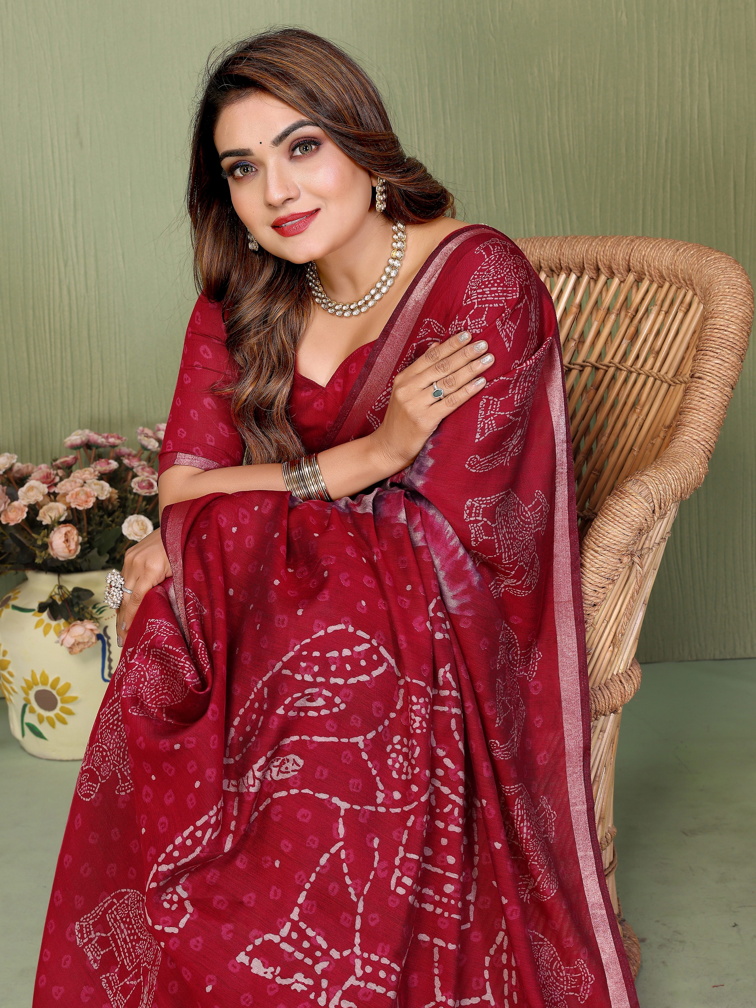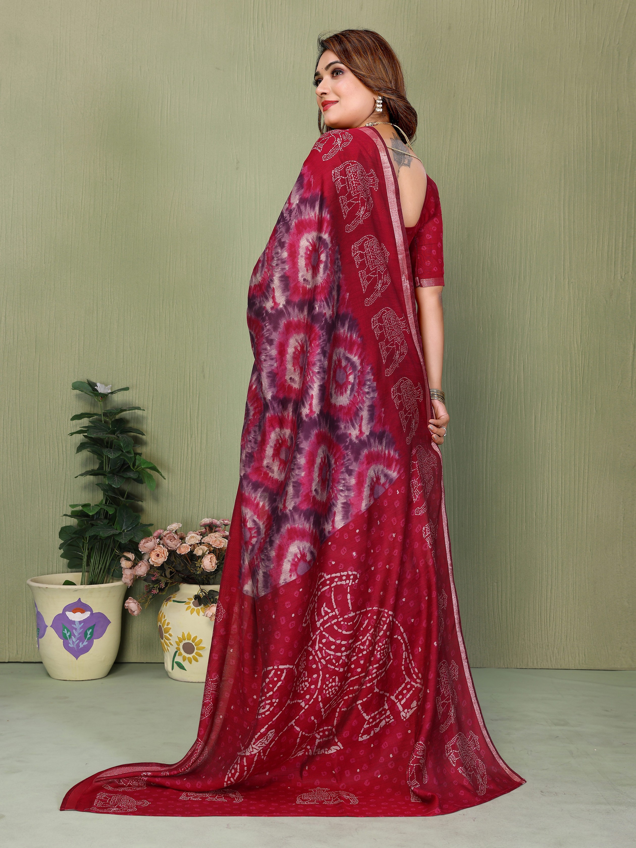 Maroon Color Mul Cotton Fabric Designer Printed Festive Special Saree