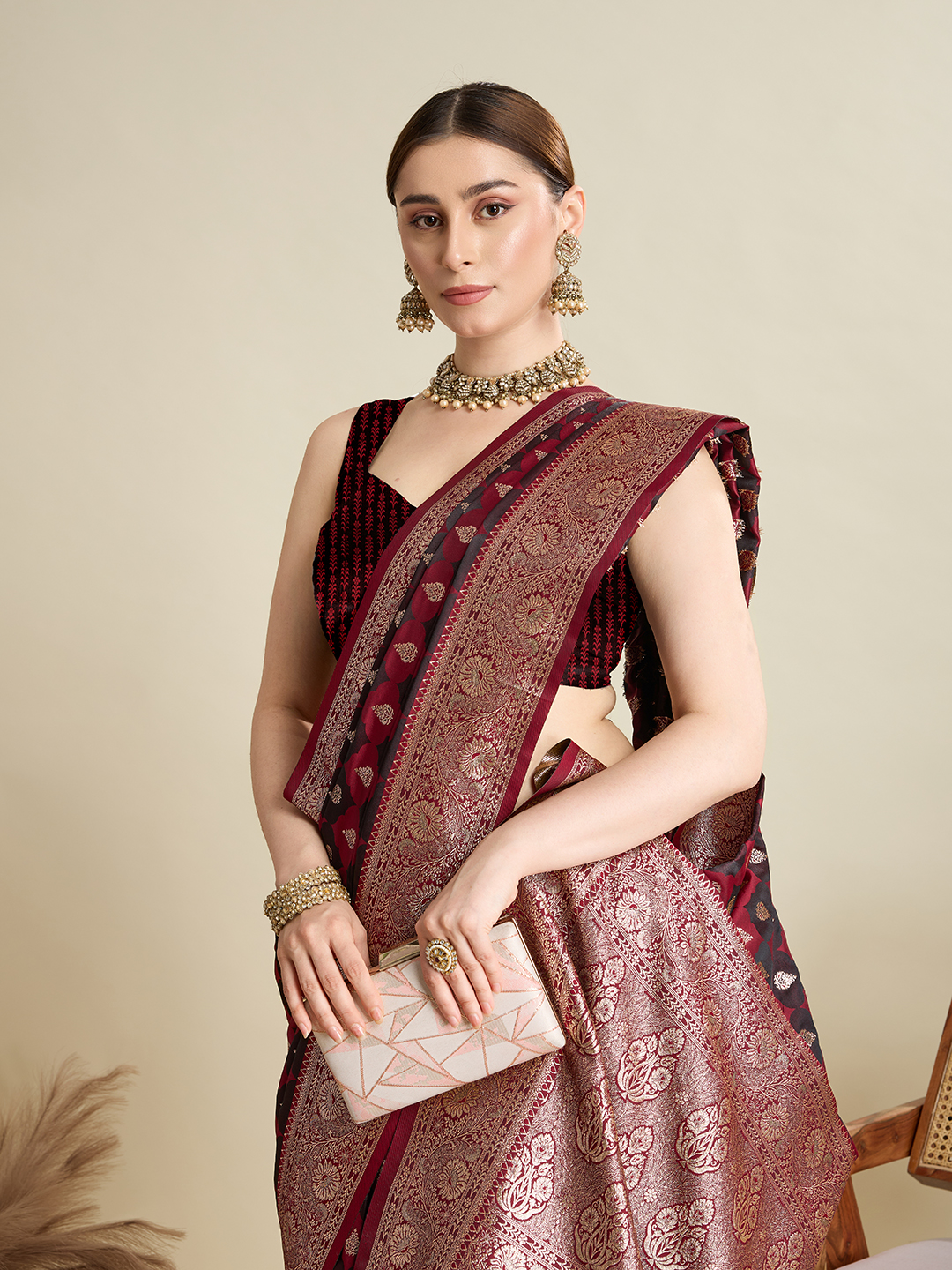 Maroon Color Satin Silk Wevon Jari Designer Graceful Ethnic Saree