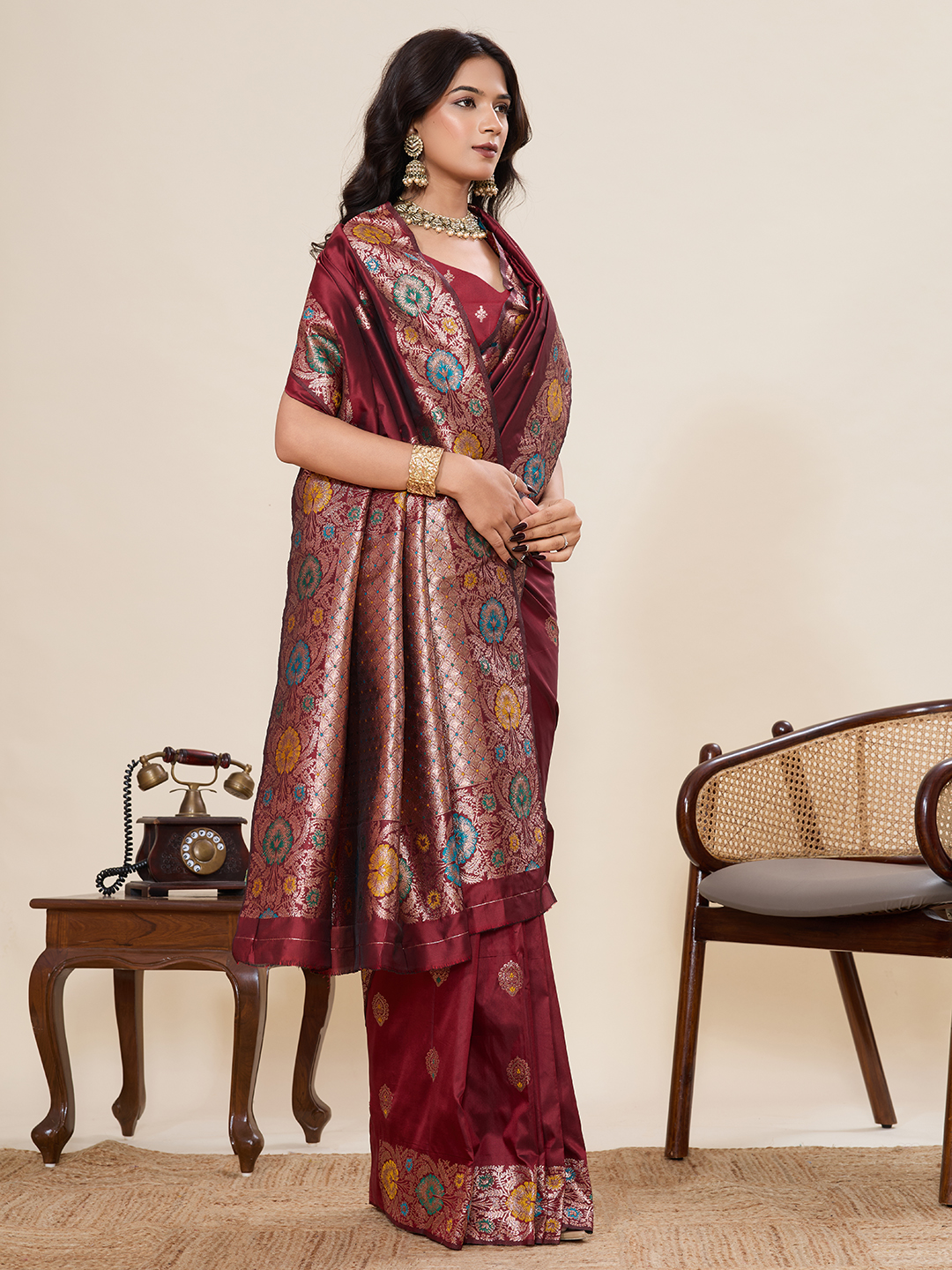 Maroon Color Soft Silk Saree For Ethnic Indian Looks