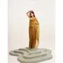 Metallic Mustard Color Beautiful Partywear Embellished Beads and Stones Satin Saree