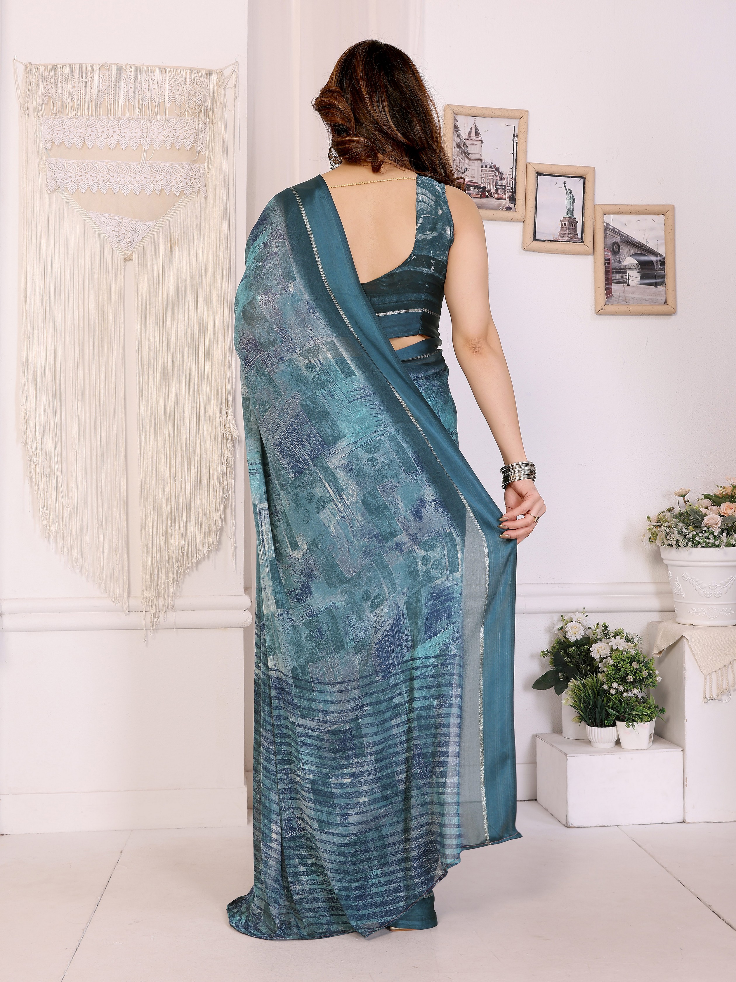 Morpich Color Moss Satin Patta Fabric Designer Printed Saree