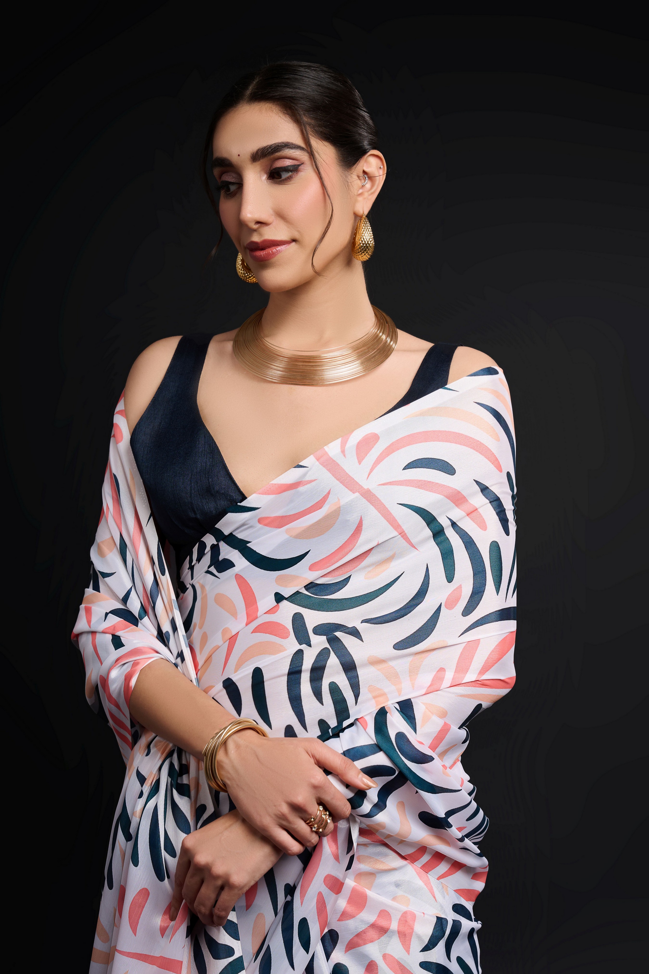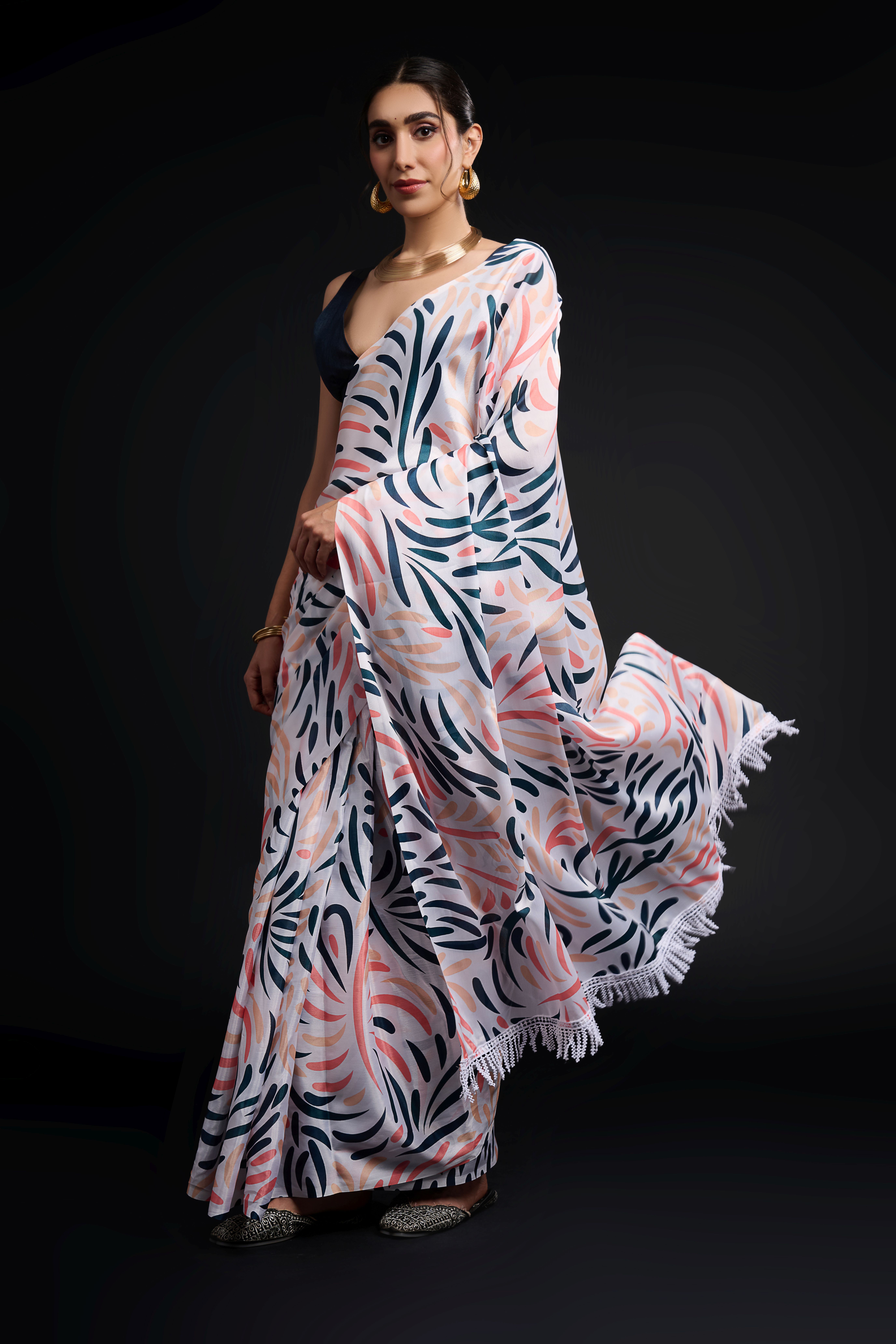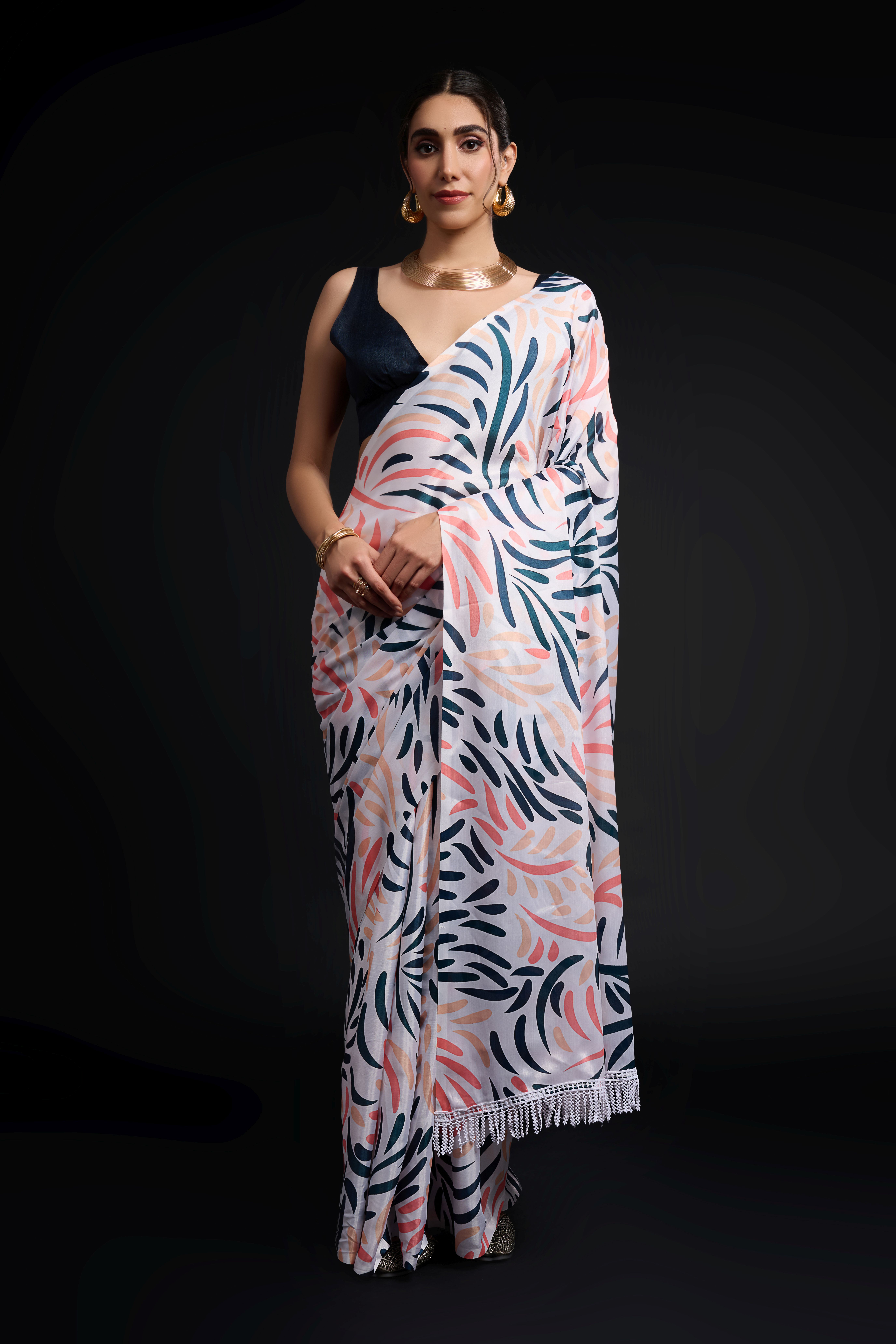 Multy Color Chinon Fabric Designer Digital Printed Ready To Wear Saree