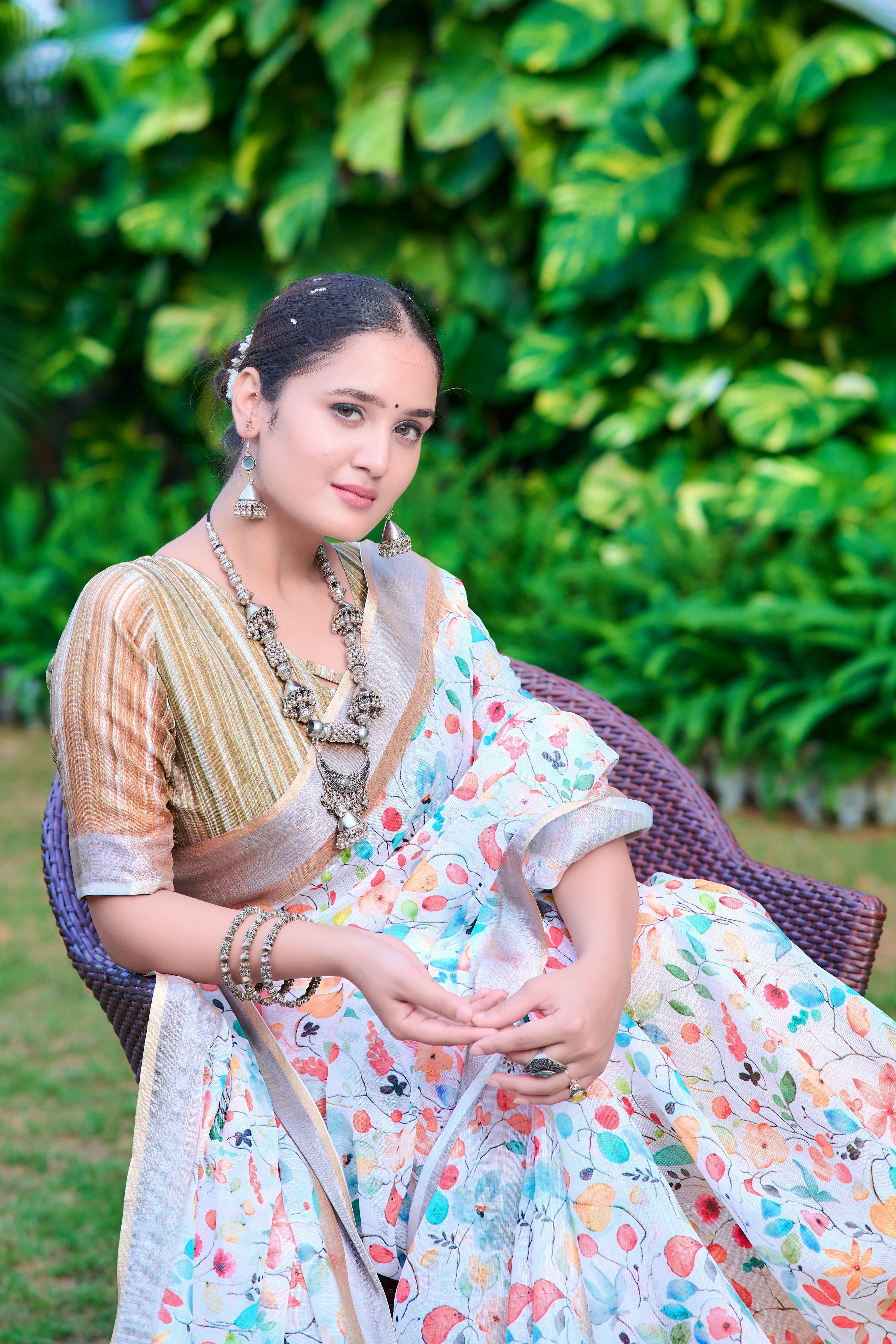 Multy Color Linen Cotton Fabric Designer Printed Ethnic Festive Saree