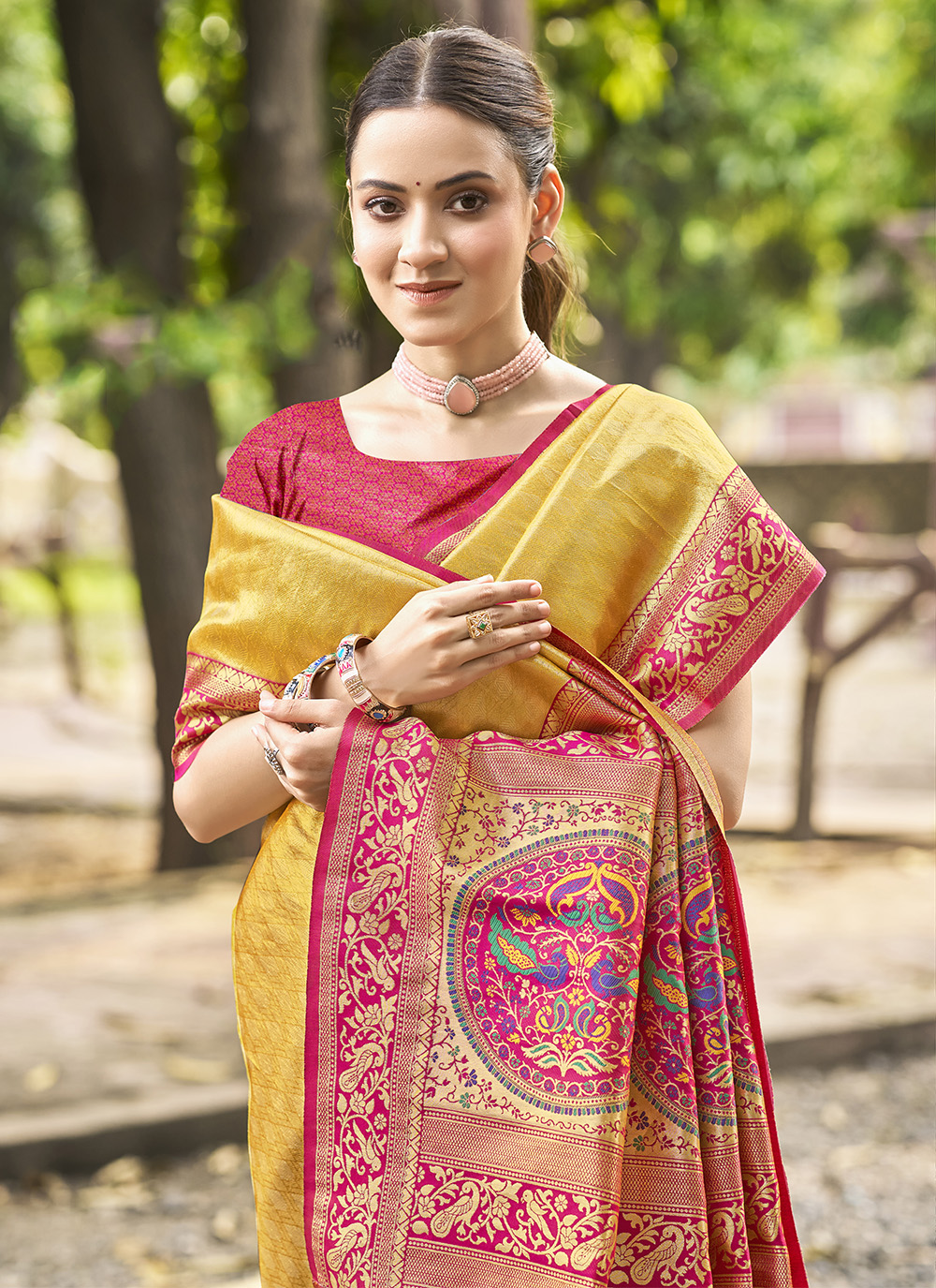 Mustard Color Kanjivaram Silk Fabric Designer Ethnic Festive Wear Saree