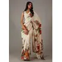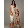 Off White Color Bright Moss Fabric Ethnic Partywear Designer Printed Saree