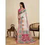 Off White Color Linen Fabric Beautiful Printed Ceremonial Saree