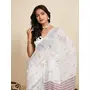 Off White Color Linen Fabric Beautiful Woven Designer Ethnic Casual Saree