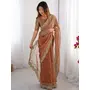 Orange Color Burbery Silk Fabric Designer Embroidered Saree For Ceremonial Looks