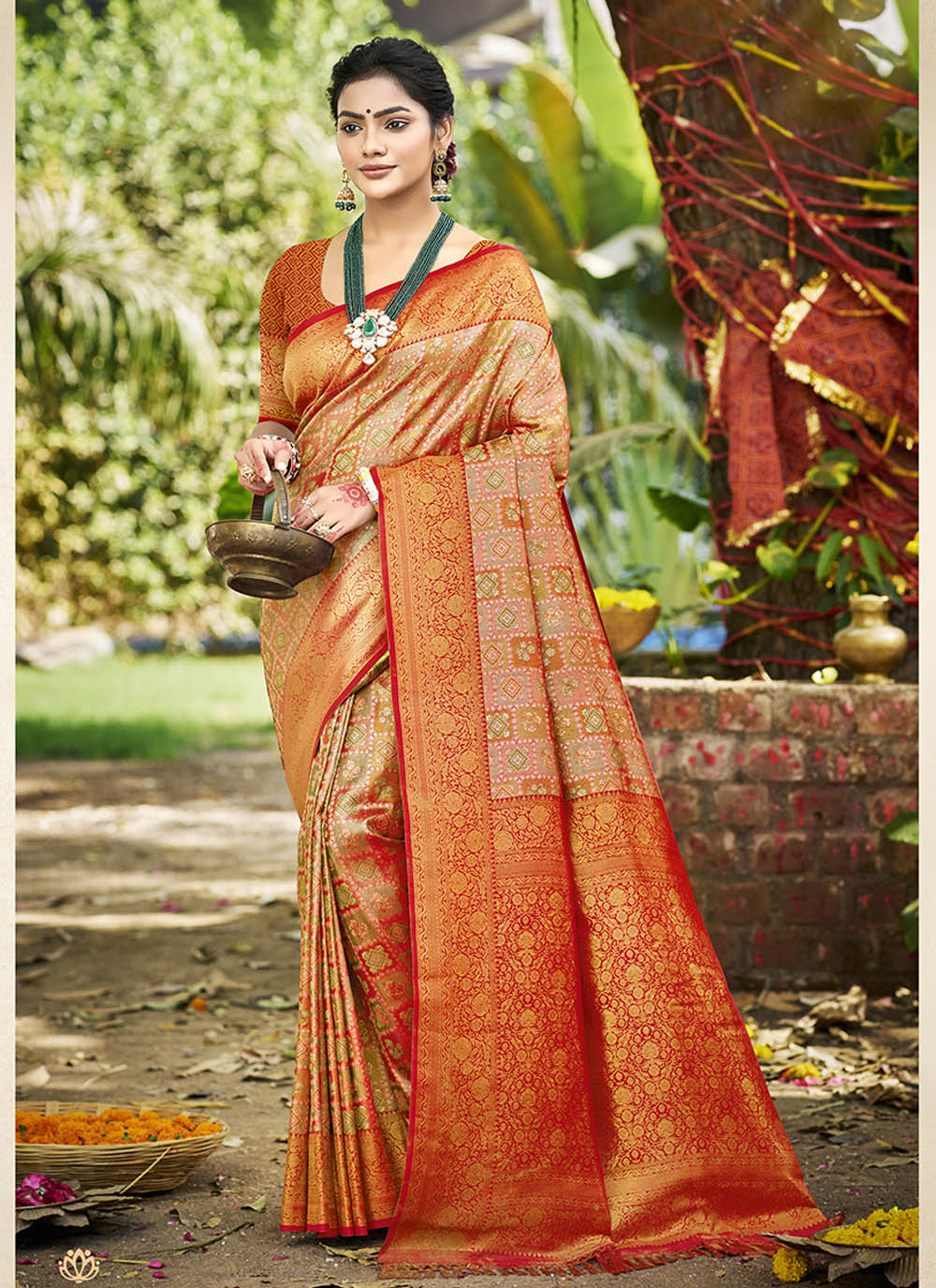 Orange Color Dharmavaram Fabric Heavy Woven Designer Wedding Wear Saree