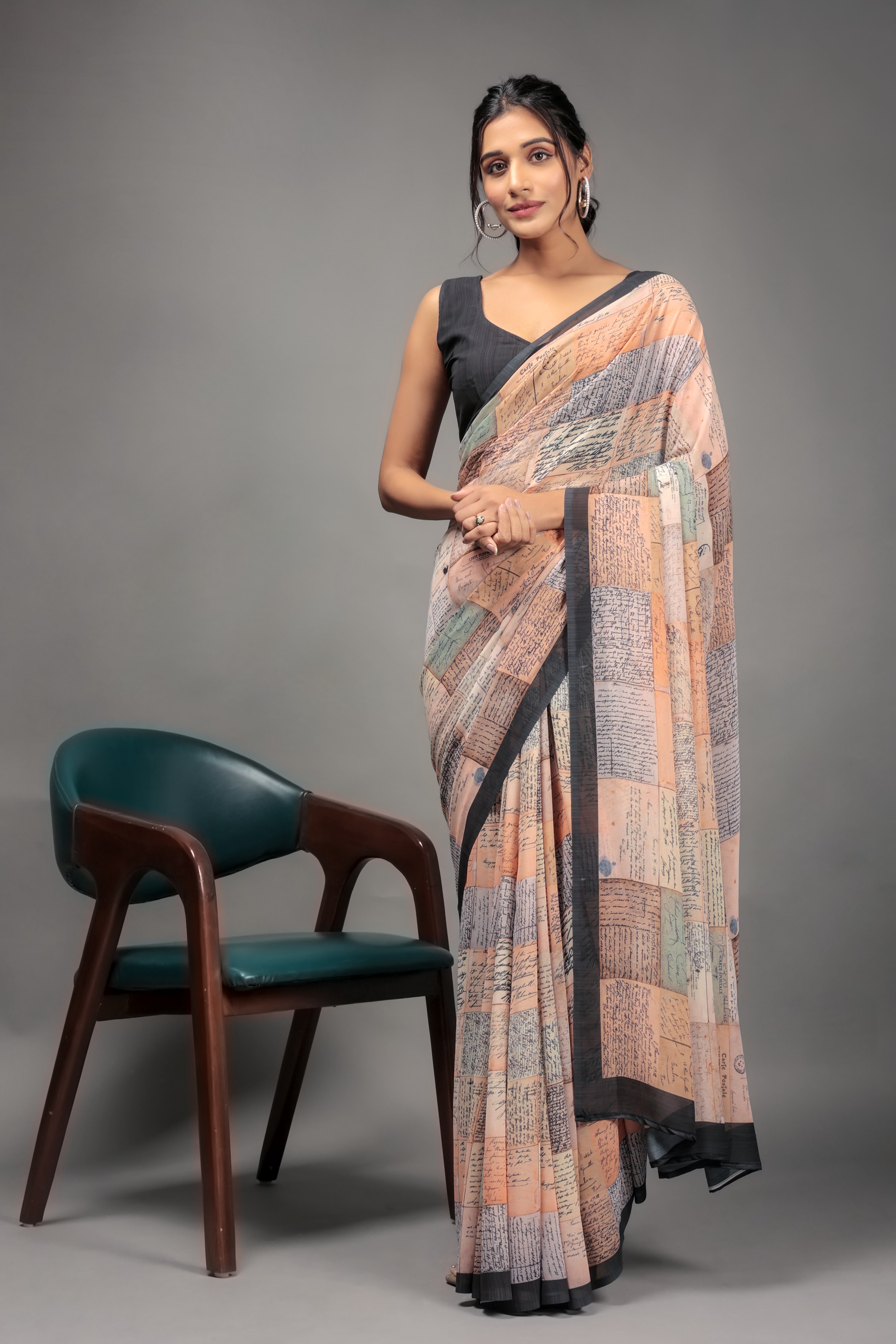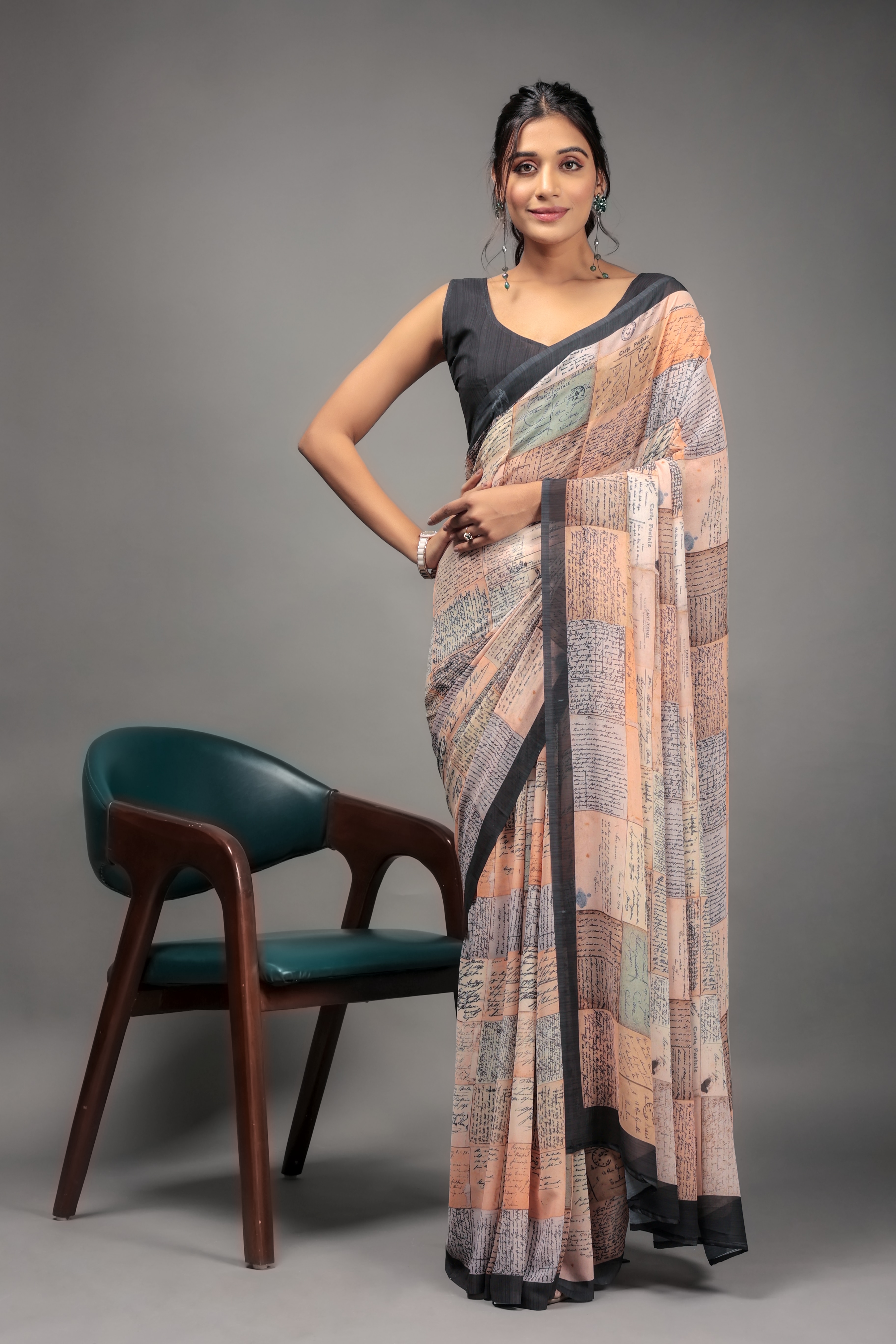 Orange Color Georgette Fabric Designer Printed Graceful Ethnic Saree
