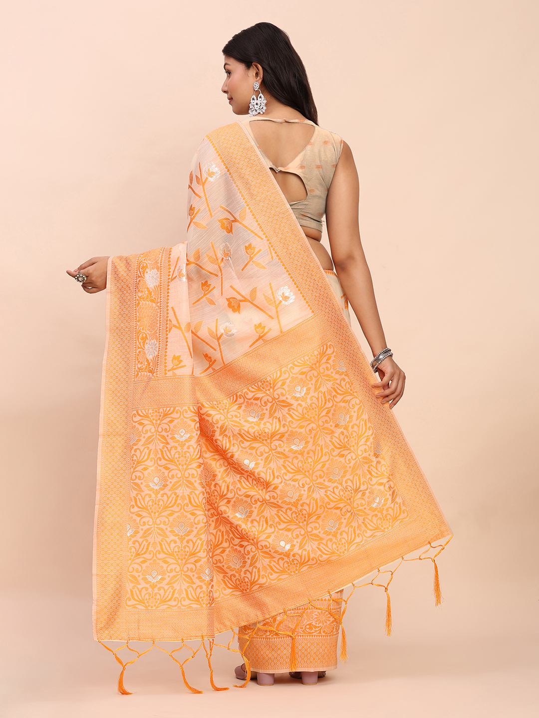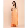 Orange Color Linen Cotton Fabric Woven Designer Saree