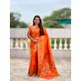 Orange Color Paithani Silk Fabric Woven Meenakari Jacquard Designer Graceful Wedding Saree