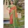 Orange Color Pochampalli Silk Fabric Woven Designer Ethnic Partywear Saree