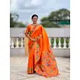 Orange Color Woven Meenakari Jacquard Designer Paithani Silk Fabric Ethnic Saree