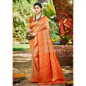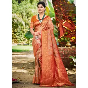 Orange Color Kanjivaram Silk Fabric...