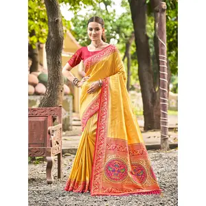 Mustard Color Dharmavaram Fabric...