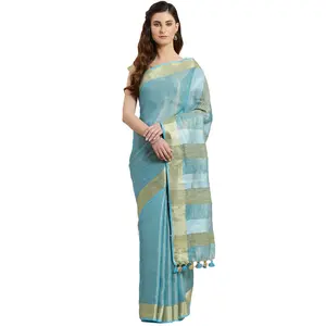 AKOLA DABU PRINT SAREE Linen...