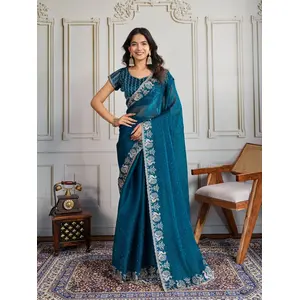 Rama Color Two Tone Satin Silk Saree...