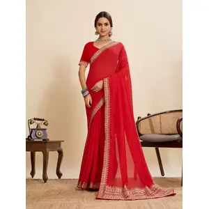 Red Color Vichitra Silk Fabric...