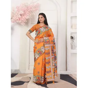 Orange Color Silk Blended Woven...