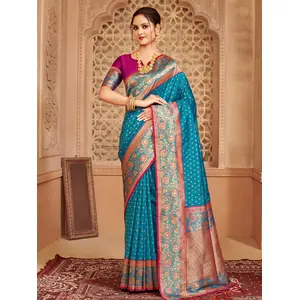 Blue Color Heavy Woven Designer Silk...