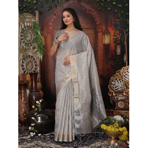 Gray Color Organza Fabric Woven...