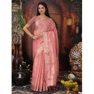 Pink Color Woven Silver Jari Designer...