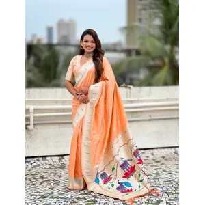 Peach Color Paithani Silk Woven...