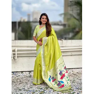 Pista Color Paithani Silk Woven...
