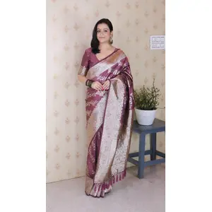 Purple Color Woven Silver Jari...