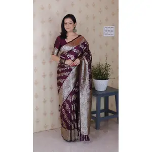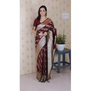 Wine Color Woven Silver Jari Designer...