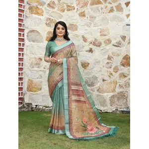 Sea Green Color Satin Silk Wevon Jari...