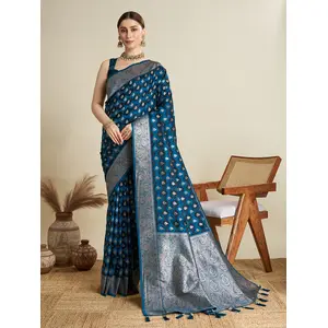 Blue Color Satin Silk Wevon Jari...