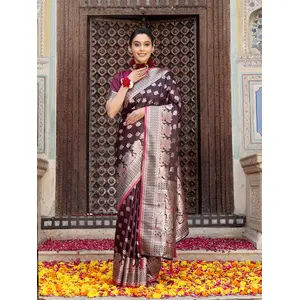 Wine Color Woven Designer Ethnic Silk...