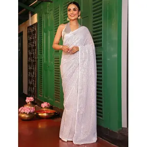 White Color Georgette Fabric Sequance...