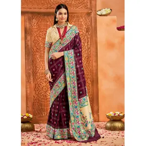 Purple Color Velvet Tussar Silk...