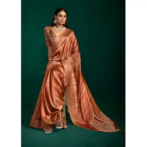 Rust Color Beautiful Tussar Silk...