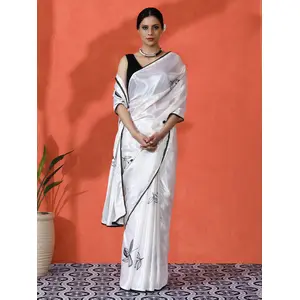 Off White Color Chinon Fabric Saree...