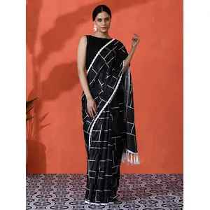 Black Color Chinon Fabric Saree With...