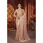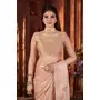 Peach Color Beautiful Heavy Work Ceremonial Fandy Satin Silk Saree