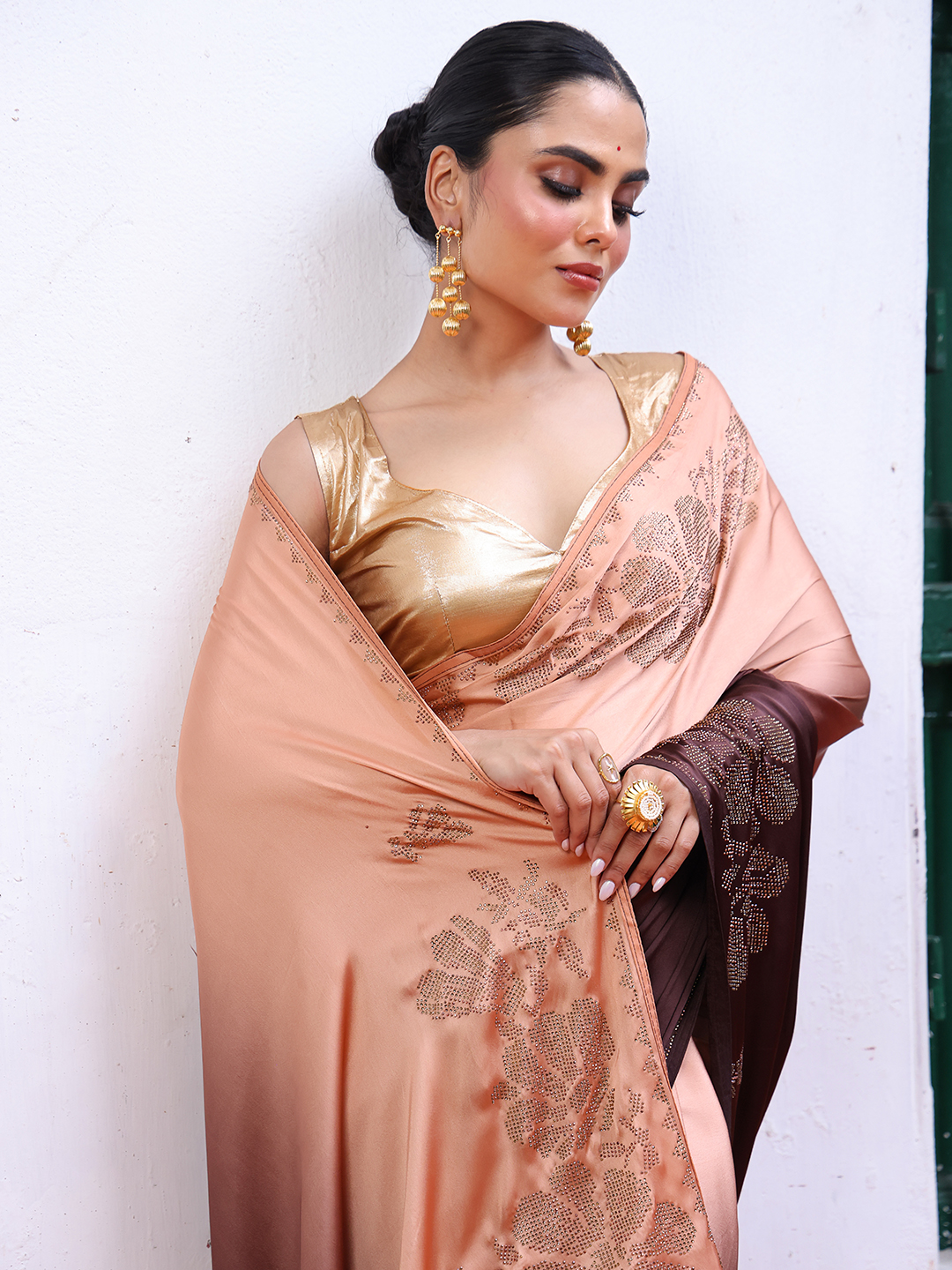 Peach Color Designer Satin Fabric Saree For Ceremonial Looks