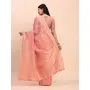 Peach Color Linen Cotton Fabric Woven Designer Ethnic Partywear Saree