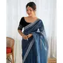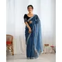 Petrol Color Twill Net Fabric Glamorous Bollywood Style Sequins Work Saree