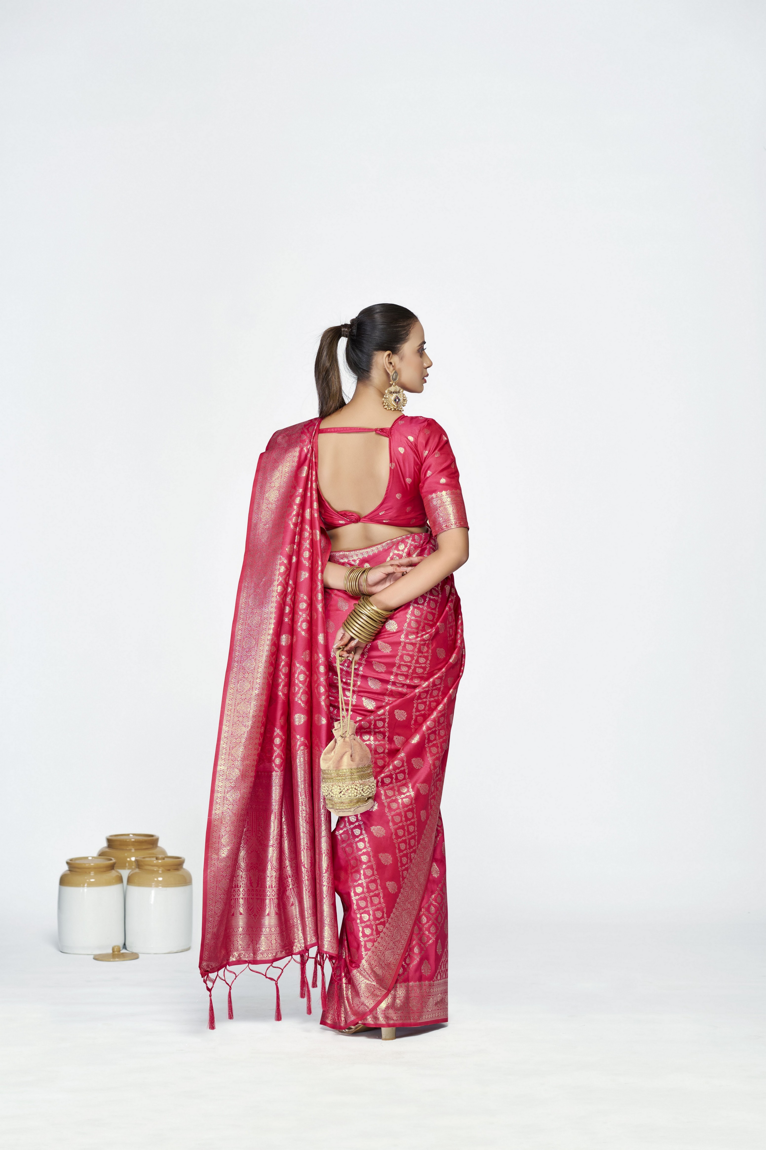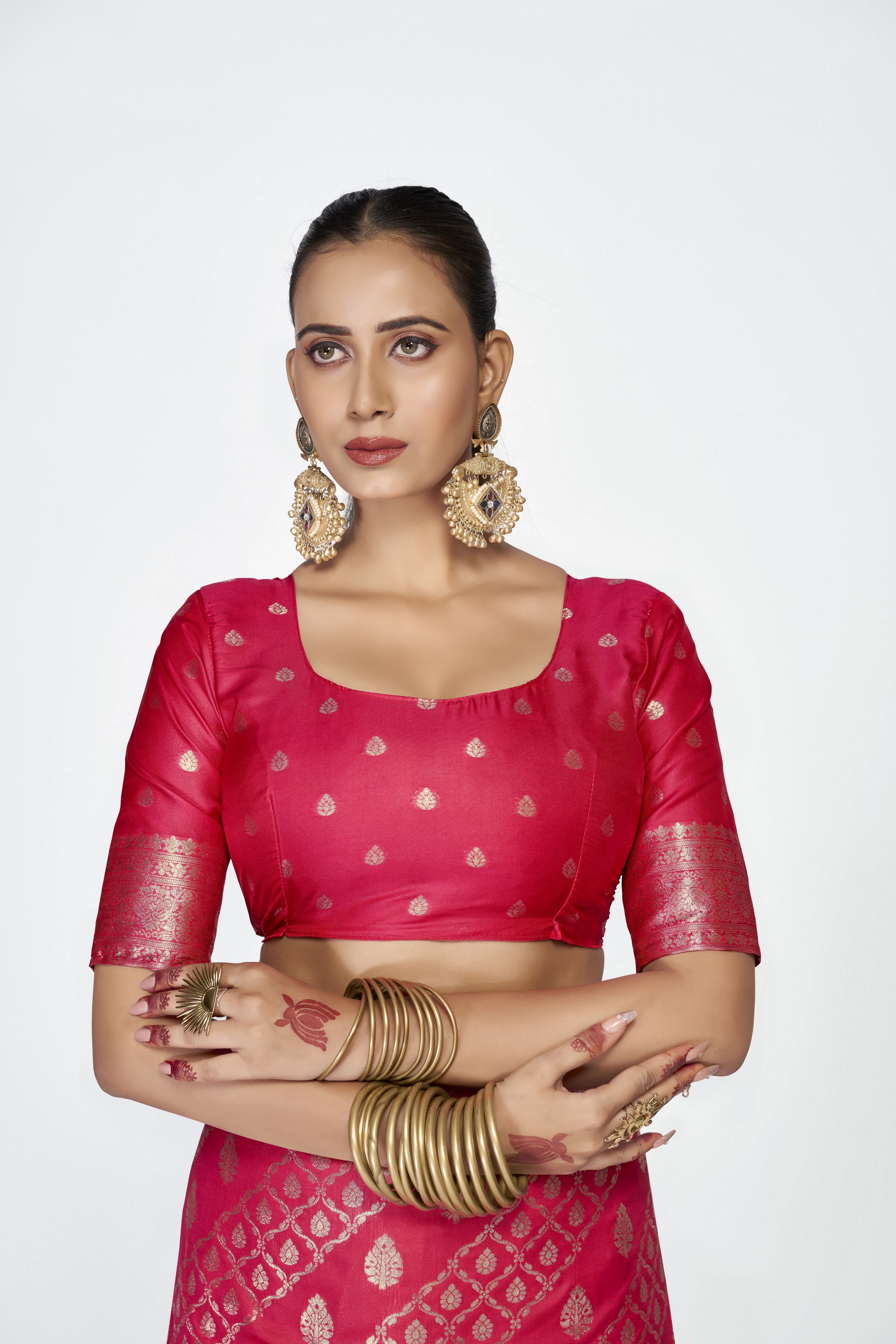 Pink color Banarasi Silk fabric Woven Zari Designer Saree
