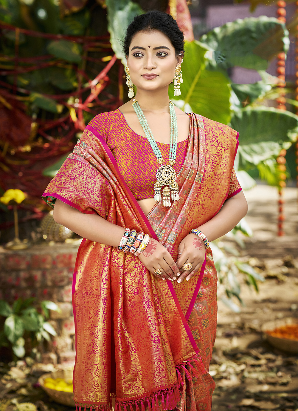 Pink Color Dharmavaram Fabric Heavy Woven Designer Wedding Wear Saree