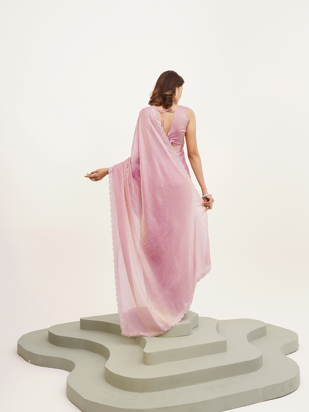 Pink Color Embellished Beads and Stones Silk Saree For Beautiful Partywear Saree