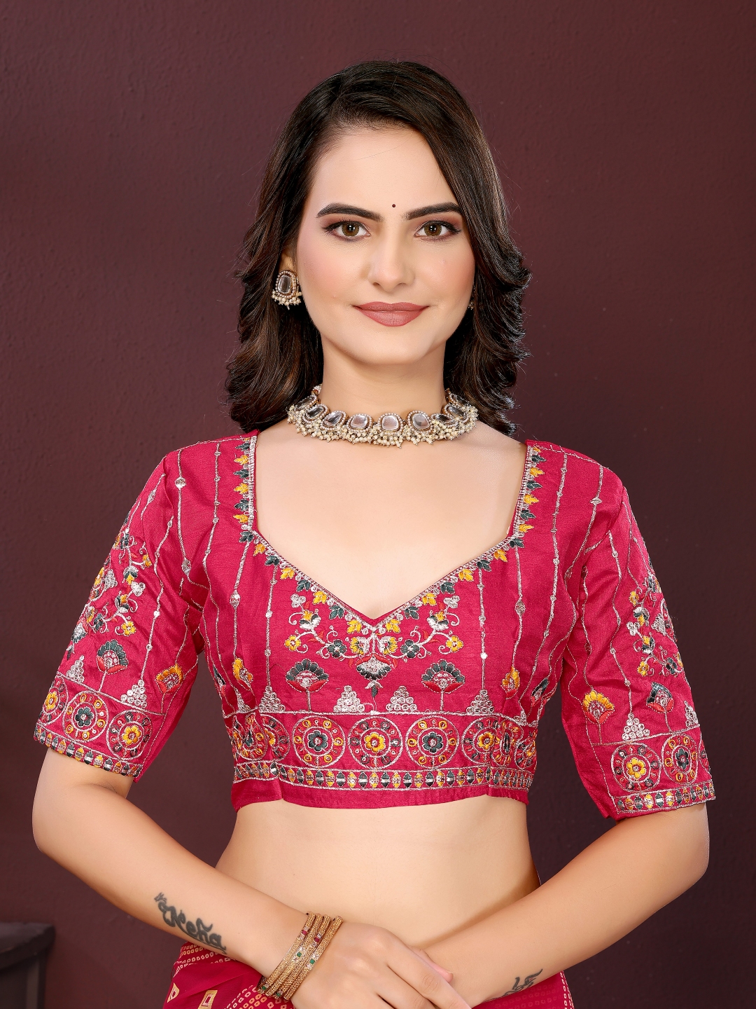 Garb These Party Wear Saree in Fine Colored.These Saree Are Georgette Are Georgette And Blouse is Art Silk Fabricated.Its Beautified With Designer Bandhani Printed With Embroidery Work Lace Border And Blouse.