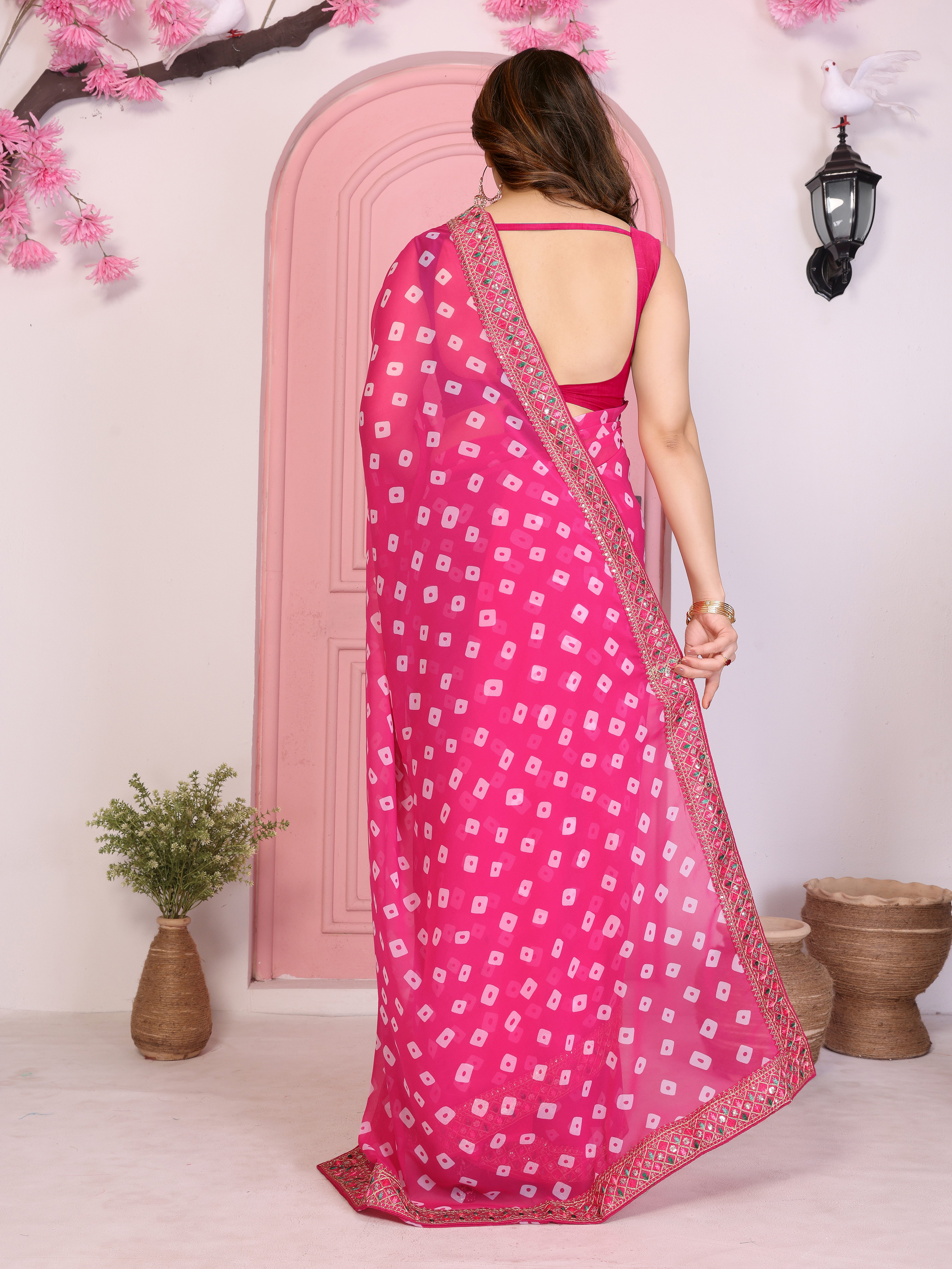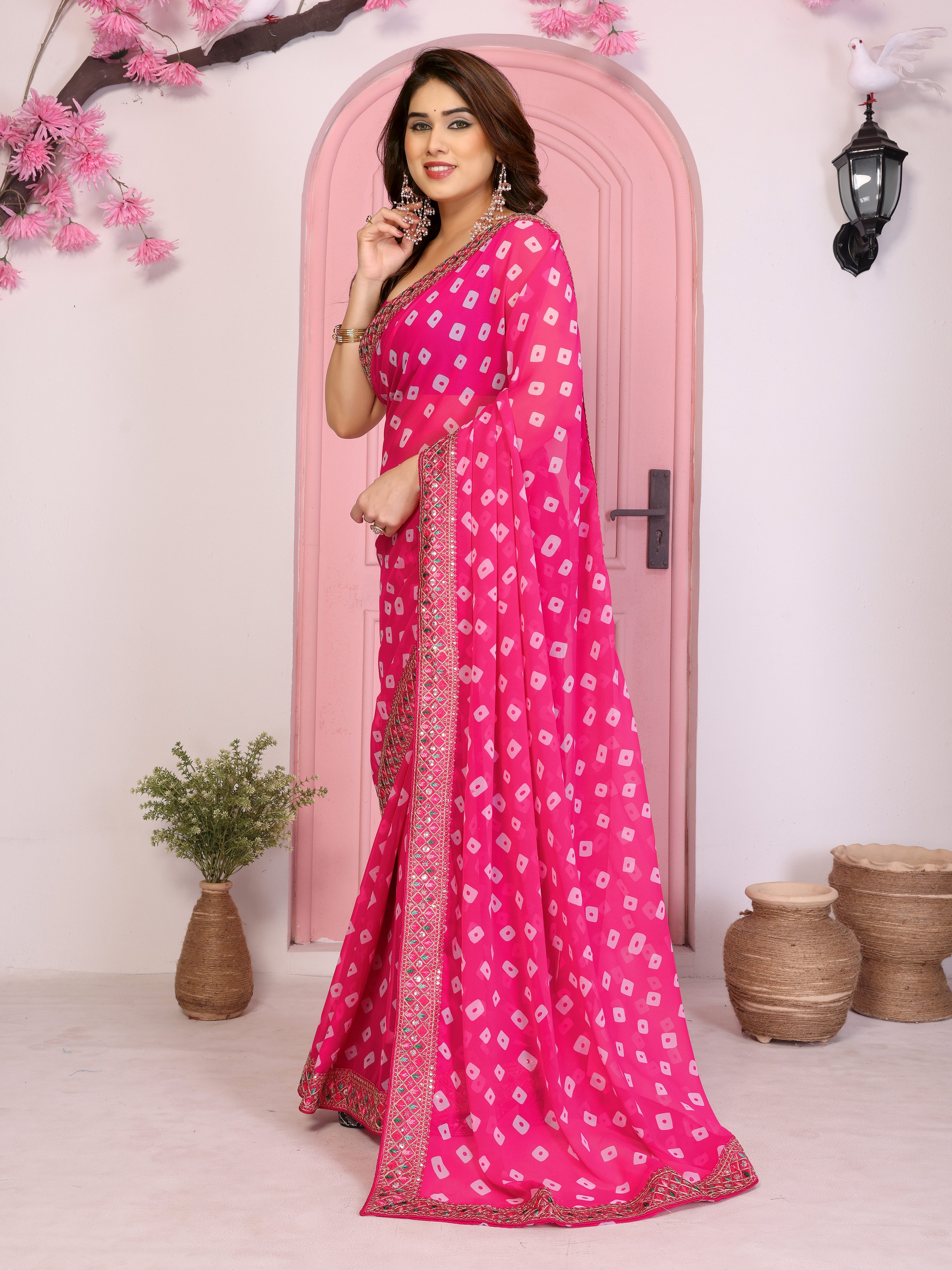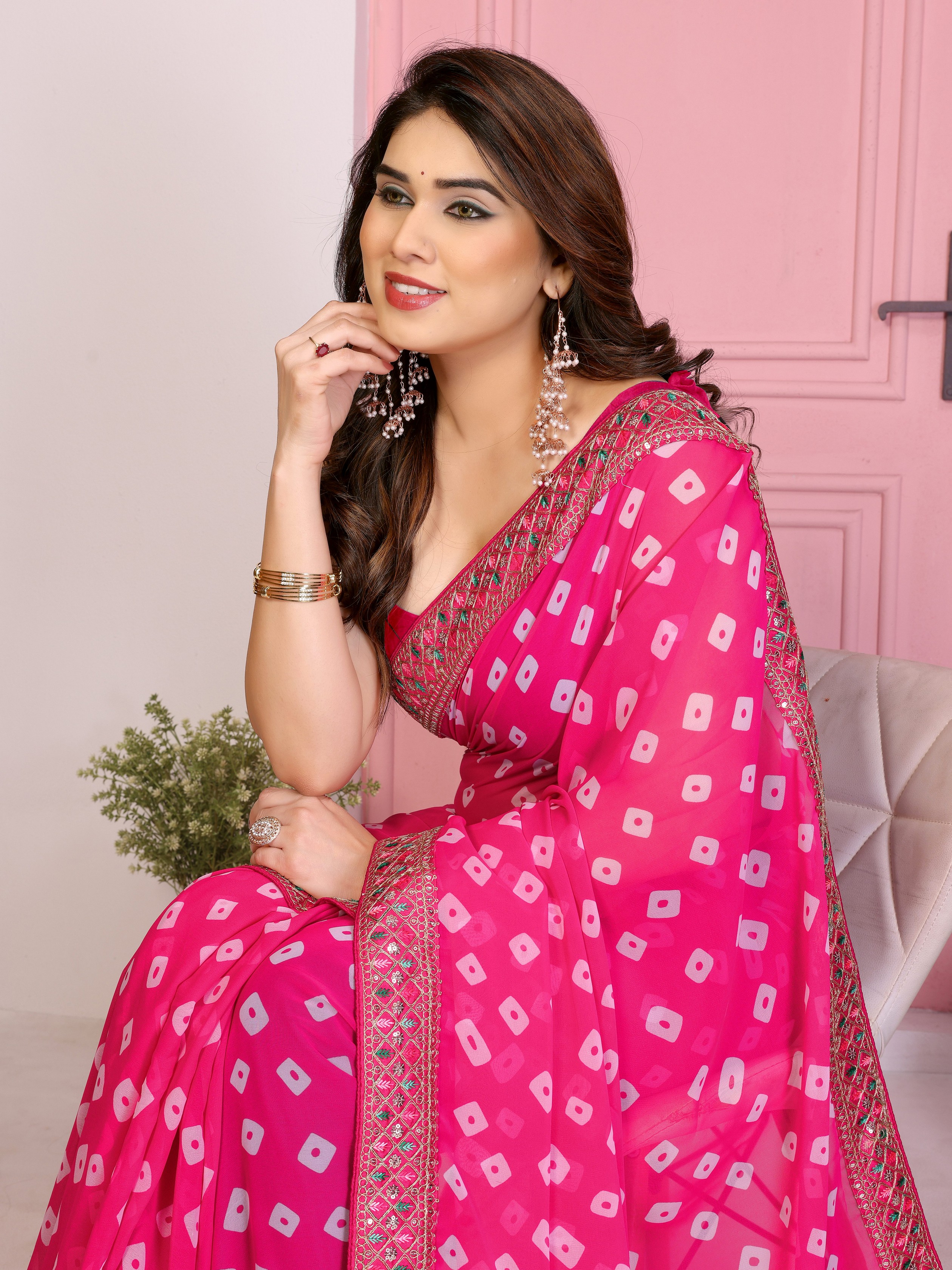 Pink Color Georgette Fabric Embroidered Partywear Saree