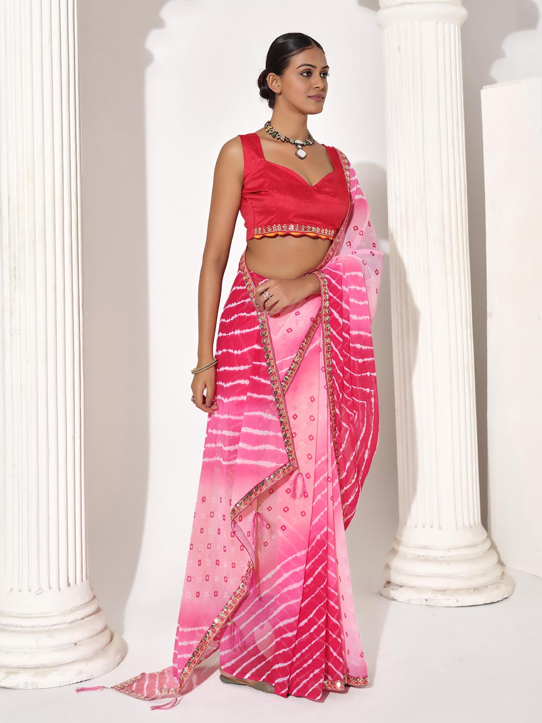 Pink Color Georgette Girlie Designer Printed Saree For Rich Sophisticated Looks