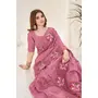 Pink Color Gold Crush Fabric Designer Embroidered Saree